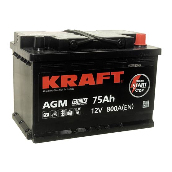 Аккумулятор Kraft AGM 75 A/h 800 А R+ 278x175x190 мм