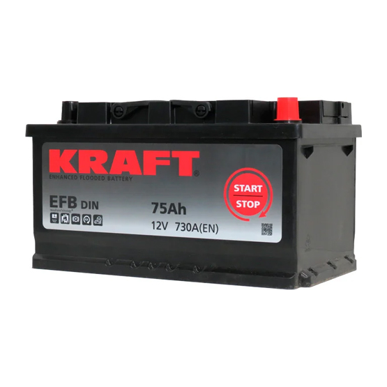 Аккумулятор Kraft EFB Start&Stop 75 A/h 730 A R+ 315х175х190 мм