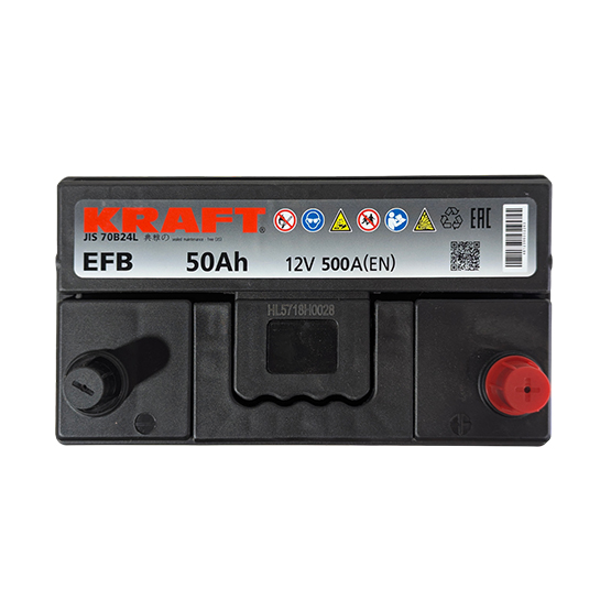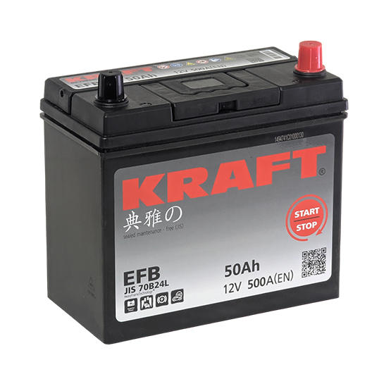 Аккумулятор Kraft EFB Asia 50 JR 50 A/h 500 A R+ JIS 70B24