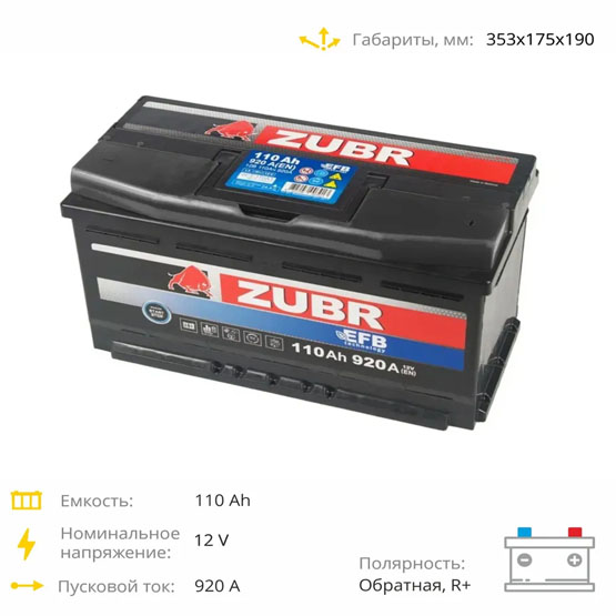 Аккумулятор Zubr EFB 110 A/h 920 A R+ 353x175x190 мм