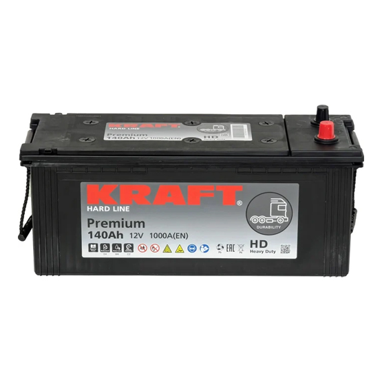 KRAFT Premium 140 (3) евро — это грузовой аккумулятор, созданный по современной технологии Ca/Ca (кальциевый). Рассмотрим его ключевые преимущества:
