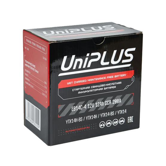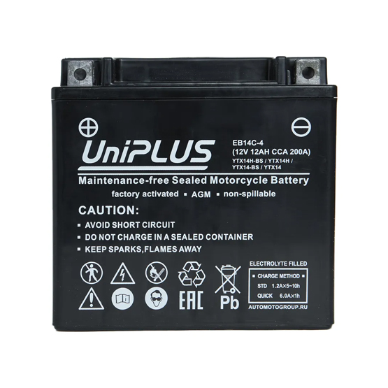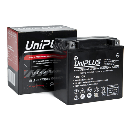 Аккумулятор UniPlus AGM EB14C-4 12 A/h 200 A L+ YTX14 151x88x147 мм
