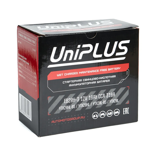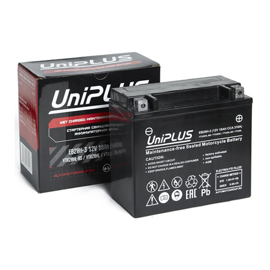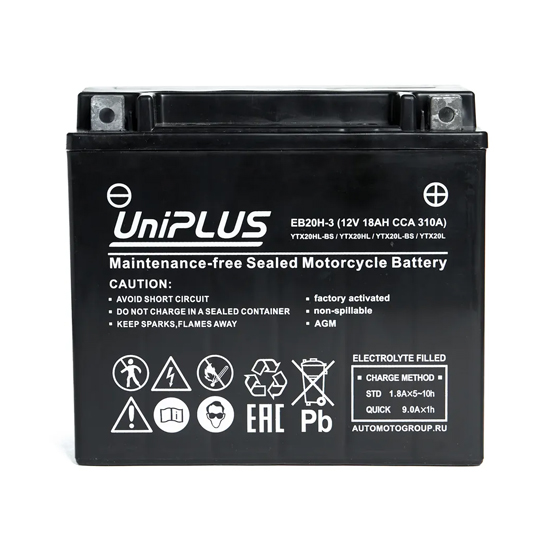 Аккумулятор UniPlus AGM EB20H-3 18 A/h 310 A R+ YTX20L 177x88x156 мм