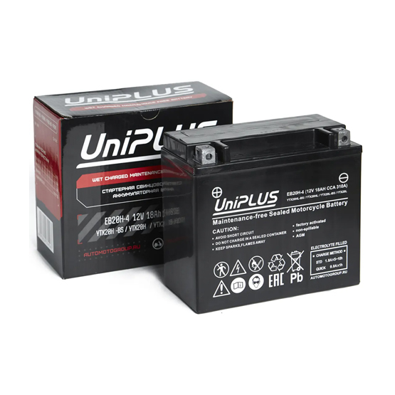 Аккумулятор UniPlus AGM EB20H-4 18 A/h 310 A L+ YTX20 177x88x156 мм