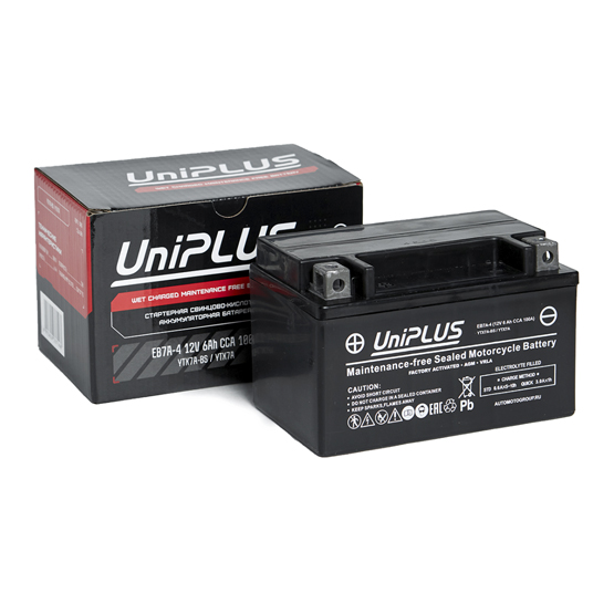 Аккумулятор UniPlus AGM EB7A-4 6 A/h 100 A L+ YTX7A 150x86x94 мм